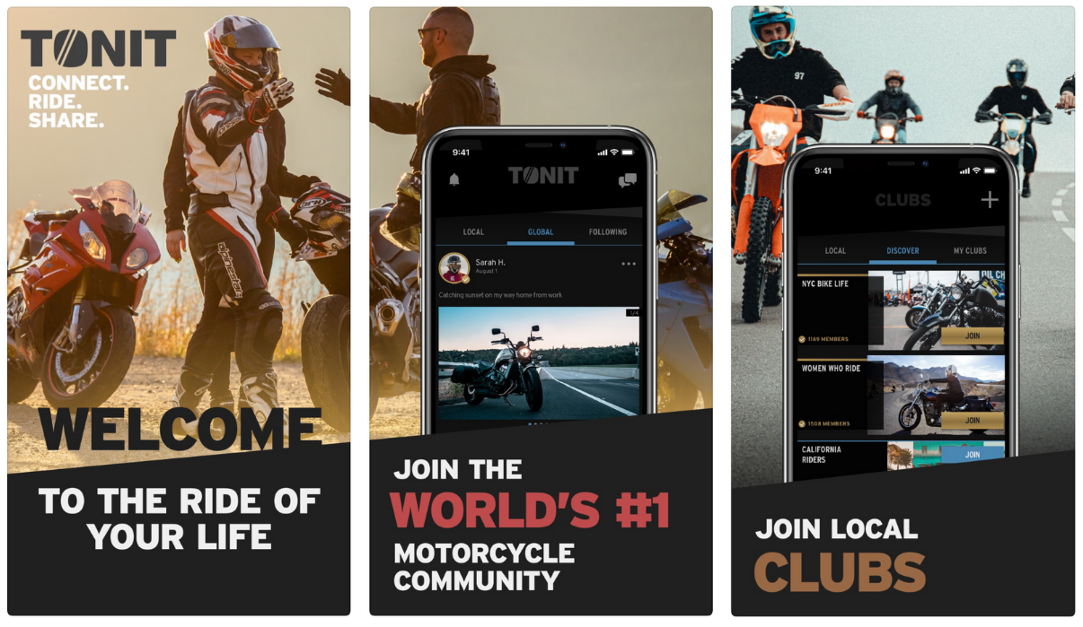 I worked with the Tonit app, a social network for motorcyclists. The initial vision for the app had many features including tracking rides, and sharing stats.